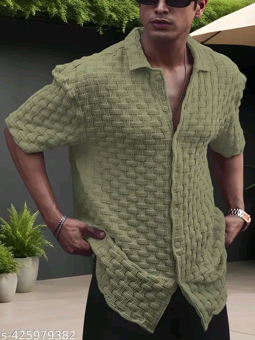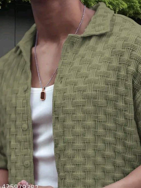 Name: SPITONZY CREATION Men's Checked Regular Spread Collar Green Shirts